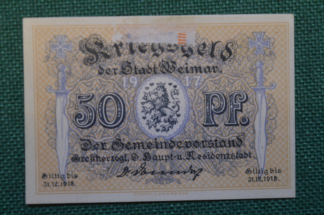 Нотгельд, бона 50 пфеннигов 1918 год. Город Weimar, Веймар, Германия.