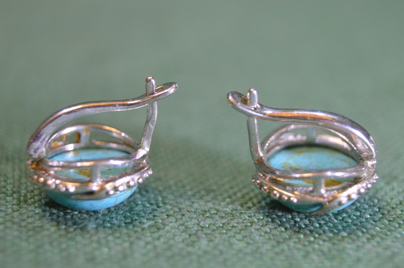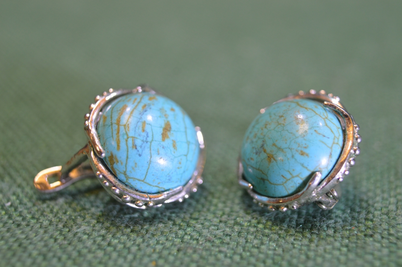 Серьги, сережки с бирюзой. Бирюза. СССР.