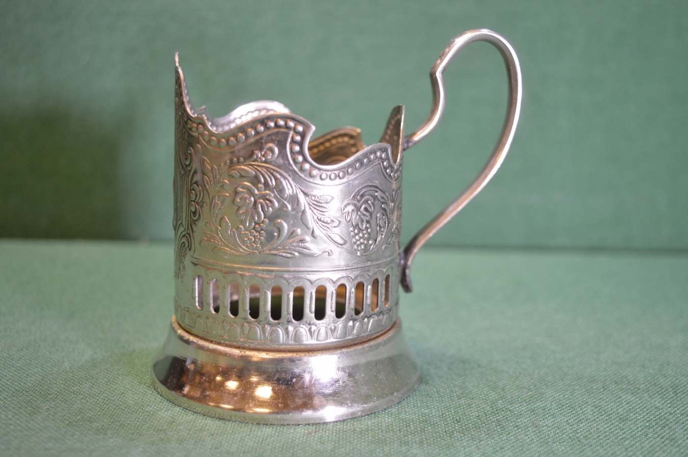 Подстаканник металлический "Космос, спутник". Мельхиор. Кольчугино, СССР. #1