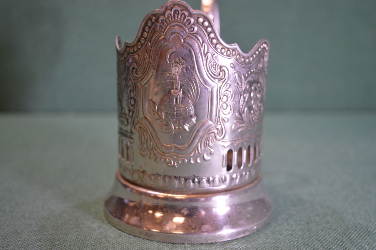 Подстаканник металлический "Космос, спутник". Мельхиор. Кольчугино, СССР. #2