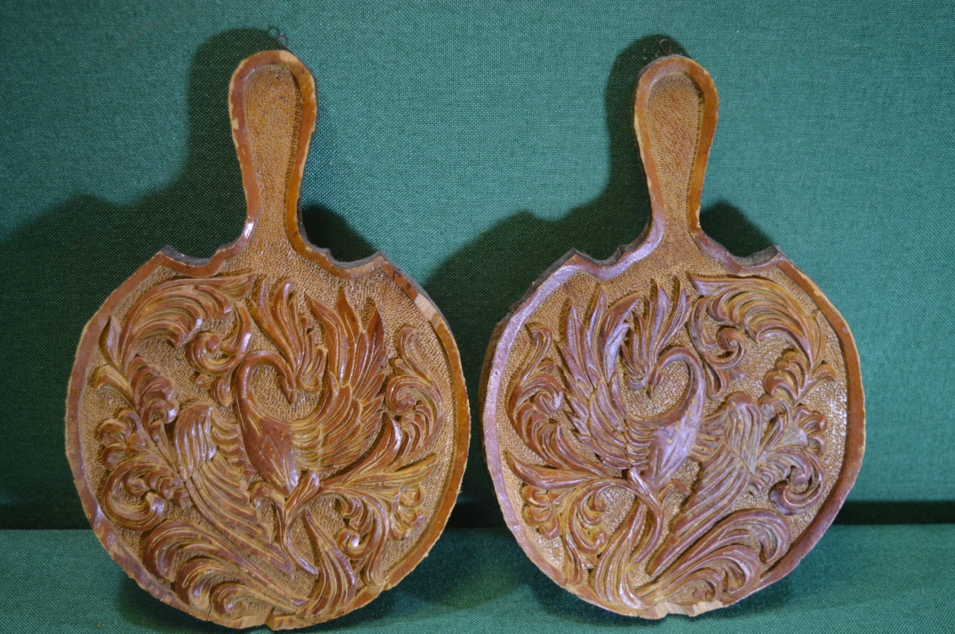 Панно старинные подвесные, парные "Жар-Птица". Дерево, резьба.