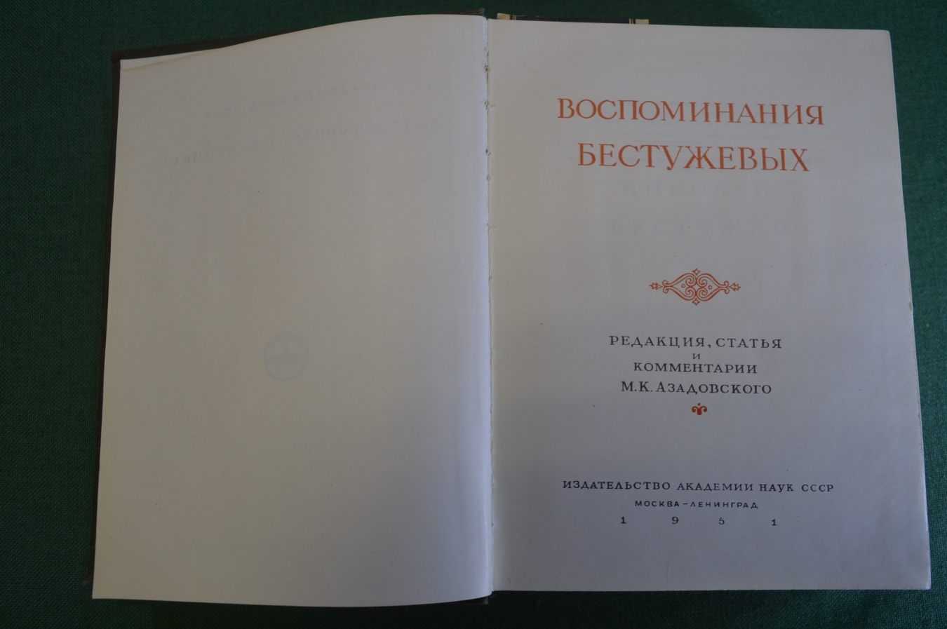 Книга "Воспоминания Бестужевых". Издательство Академии Наук, 1951 год. #K19
