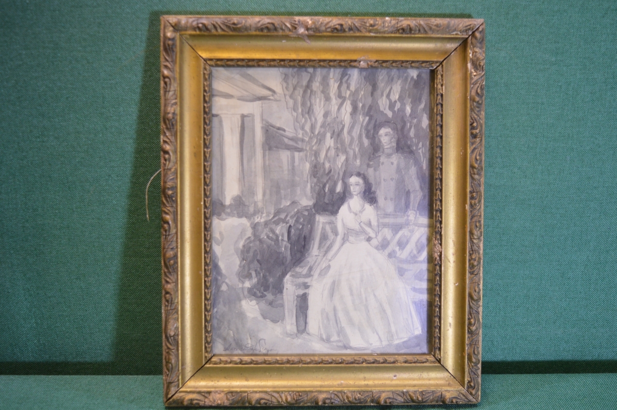 картина, старинная, акварель,