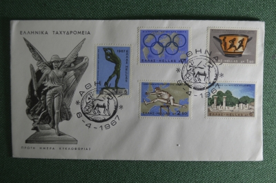 Конверт "Олимпийский виды спорта". Афины, Греция, 6 апреля 1967 года.